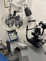 American Optical exam chair and instrument stand w/ attached slit lamp & phoropter(comes with a cover)