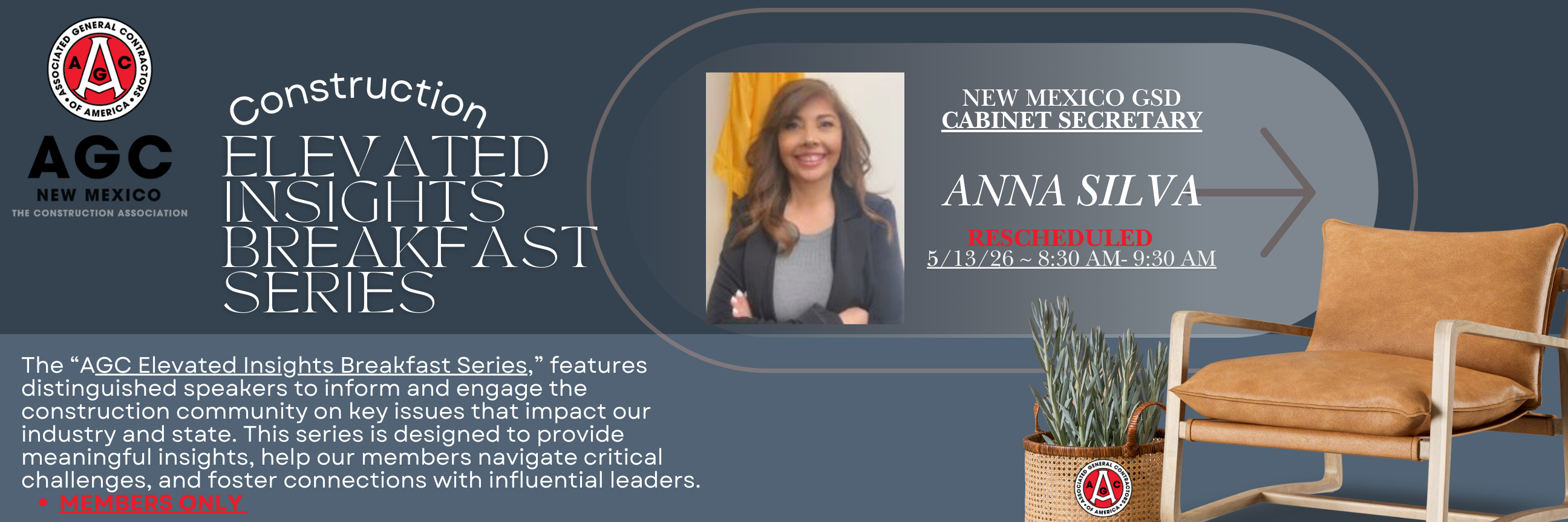 The “AGC Elevated Insights Breakfast Series,” features distinguished speakers to inform and engage the construction community on key issues that impact our industry and state. This series is designed to provide meaningful insights, help our members navigate critical challenges, and foster connections with influential leaders. MEMBERS ONLY