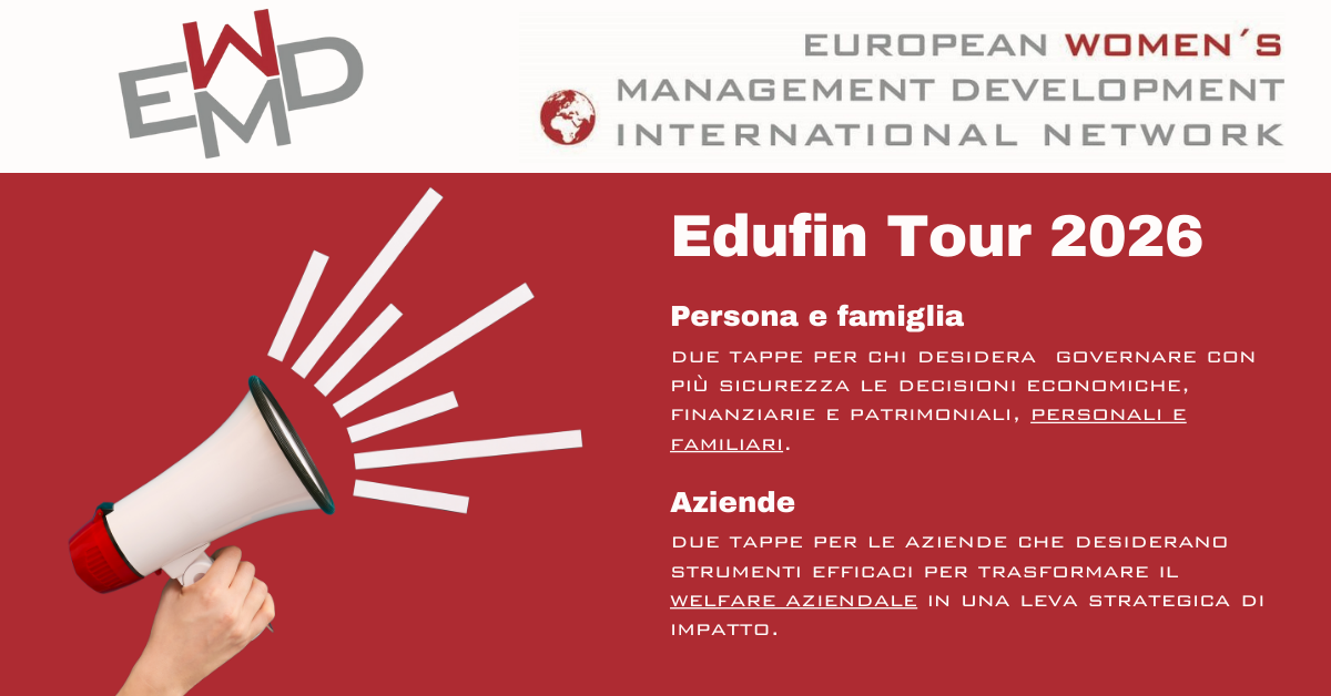 EWMD Italia presenta l’EDUFIN TOUR 2026, con eventi — online e in presenza — dedicato a chi desidera acquisire maggiore sicurezza e autonomia nelle proprie decisioni economiche, finanziarie e patrimoniali, personali o aziendali.