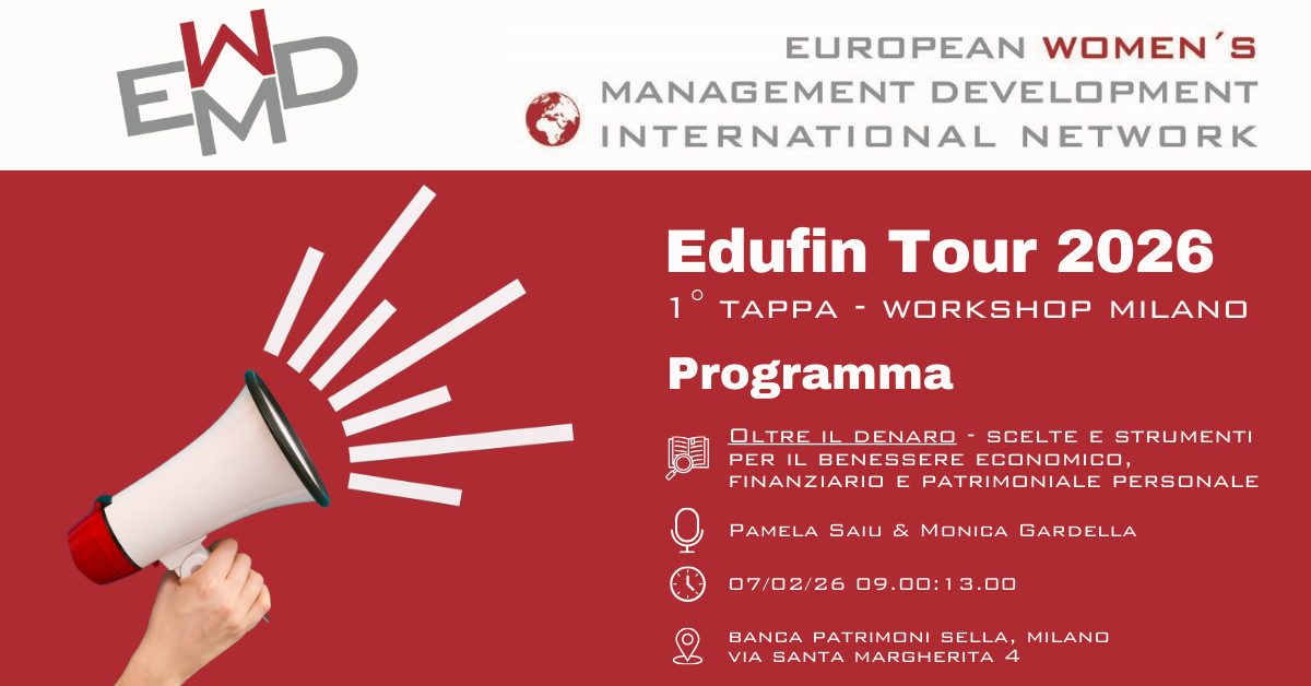 EDUFIN TOUR è un’iniziativa di EWMD Italia e condotta dalle socie Pamela Saiu e Monica Gardella Il nostro impegno