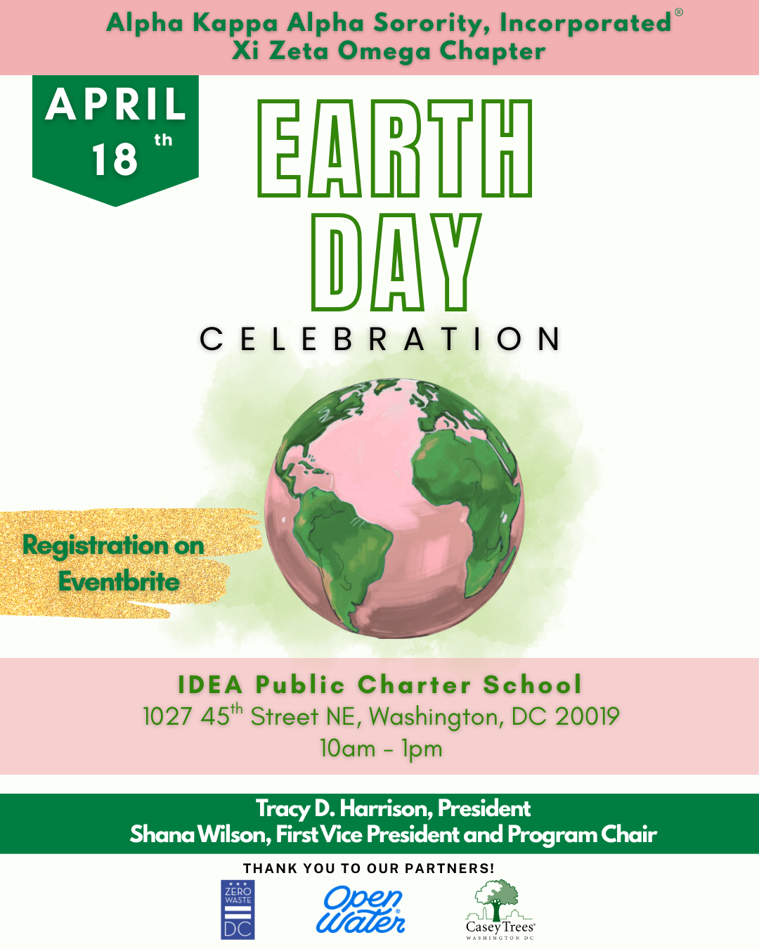 The Alpha Kappa Alpha Sorority, Incorporated® Xi Zeta Omega Chapter invites you to join us for a community Earth Day celebration focused on environmental stewardship, education, and service.