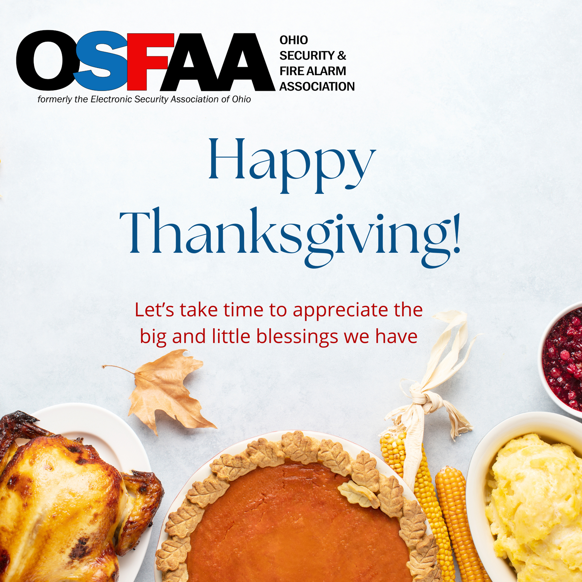 As we gather with friends and loved ones this Thanksgiving, we want to take a moment to say how truly grateful we are for each of you. OSFAA is more than an association—it’s a community of professionals who show up every day to protect lives, property, and peace of mind across Ohio. That work matters, and so do the people behind it. Thank you for your commitment to excellence, your support of one another, and the pride you take in advancing our industry. Whether you’ve been a member of OSFAA for years or you’ve just joined us this season, you are an important part of what makes this association strong! We hope your holiday is filled with rest, good food, and the kind of moments that remind you what you’re working for. Enjoy the time with those you care about, and know that OSFAA is thankful for you—today and every day! |