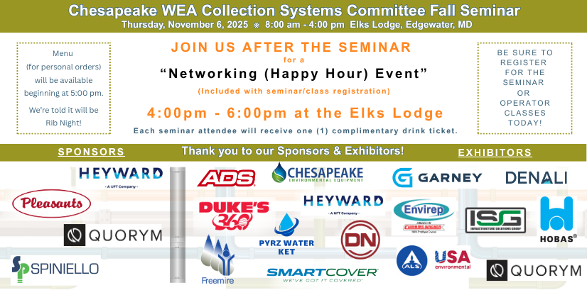 If you would like to join Chesapeake WEA's Collection Systems Committee meeting, use the link below. Microsoft TeamsNeed help? Join the meeting now