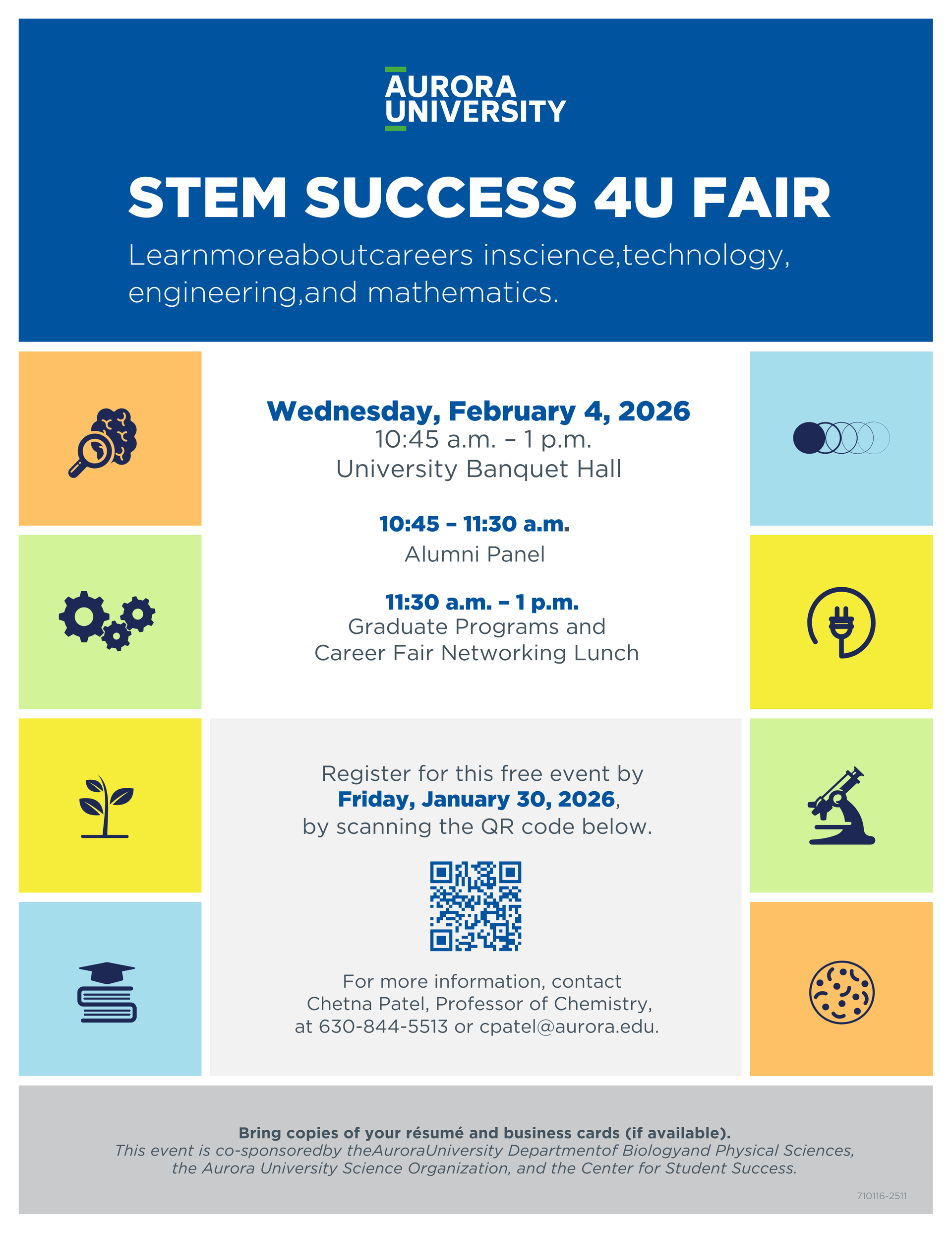 Aurora University Annual STEM Success4U Fair Wednesday, February 4, 2026 10:45 a.m. to 1:00 p.m.