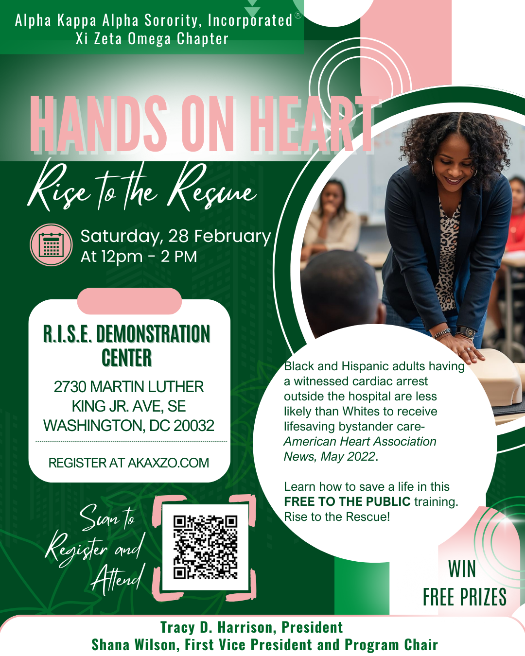 According to the American Heart Association (2022), Black and Hispanic adults having a witnessed cardiac arrest outside the hospital are less likely than Whites to receive lifesaving bystander care. Learn how to save a life in thisFREE TO THE PUBLIC training. Must be 18 years or older to participate in the training. Rise to the Rescue!