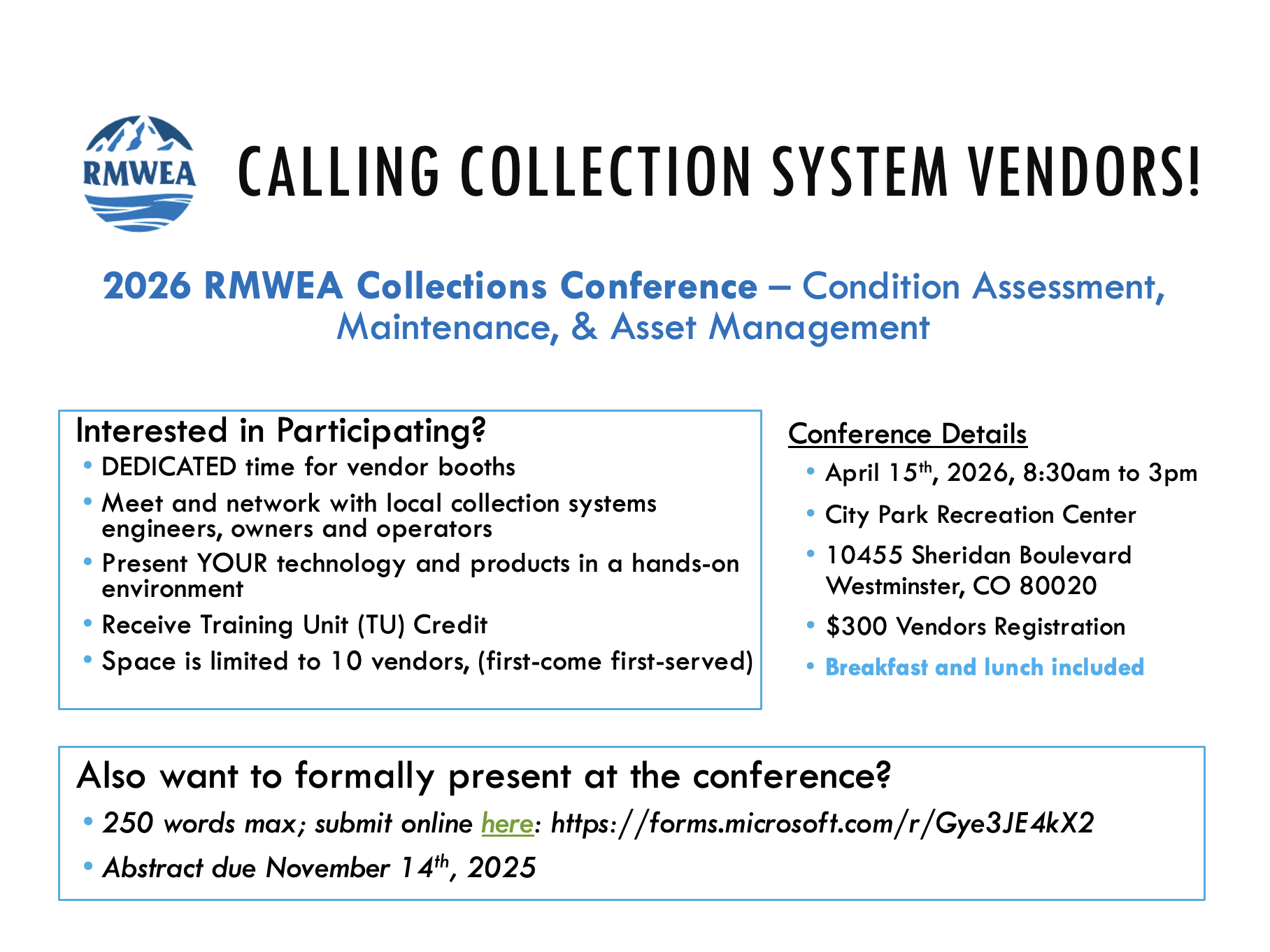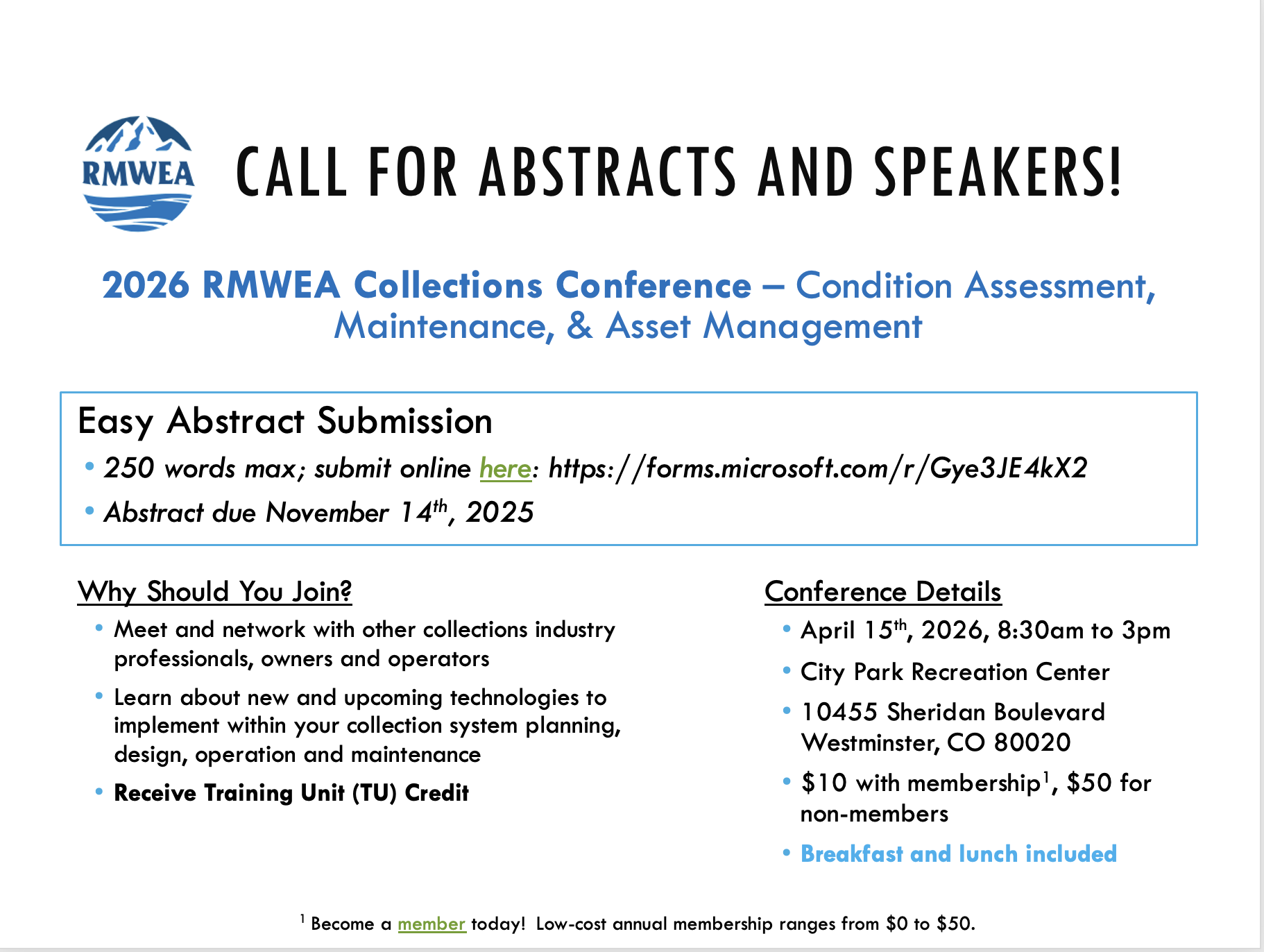 Events available for Registration... New Mexico PWO 10/16/2025 register for this event... TAC Luncheon: Biosolids Innovations in Technology to Ease Operations and Maintenance 10/16/2025 register for this event... Estes Park PWO Seminar 10/22/2025 register for this event... Englewood PWO Seminar 11/5/2025 register for this event... |