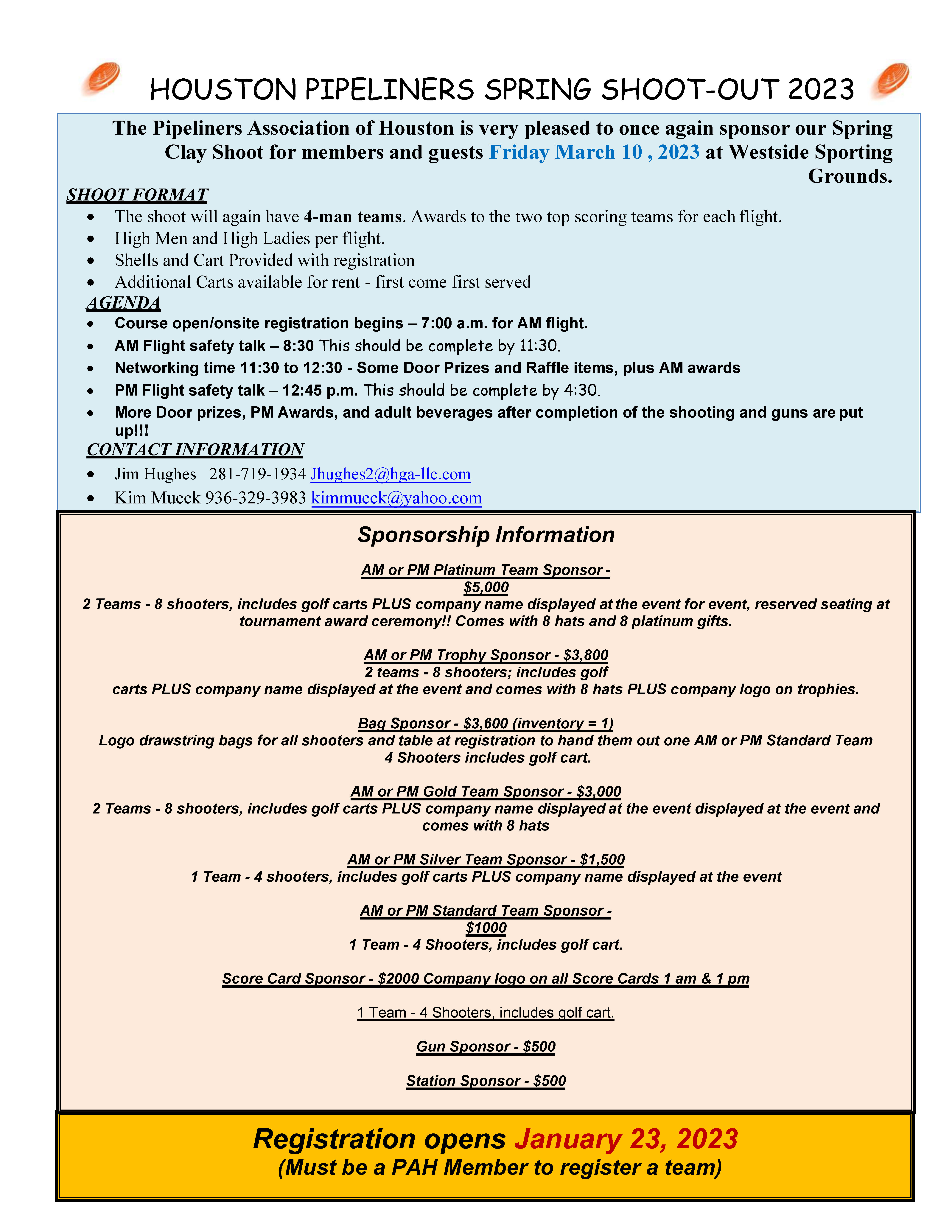 REGISTRATION IS CLOSED - SEE YOU AT THE CLAYSHOOT