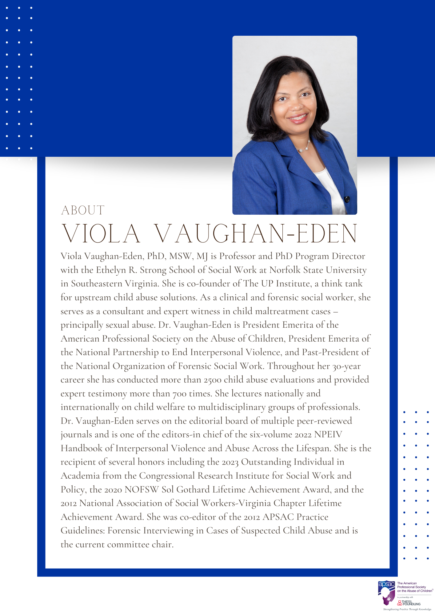 Viola Vaughan-Eden, PhD, MSW, MJ, FAPSAC