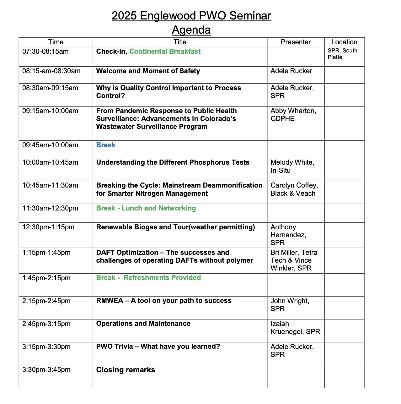 Join us for the 2025 Englewood PWO Seminar at South Platte Renew on November 5, 2025.