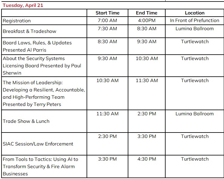 Event Registration - North Carolina Security and Low Voltage Association (NCSLVA)
