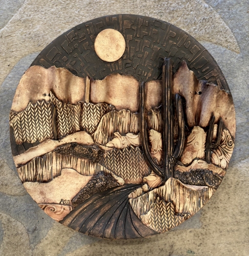 This plate is 15” in width. This plate has a textured sky and a plain white moon.