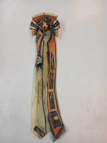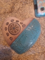 Cross done with Ancient Copper with Blue Heart and Bird on it.
