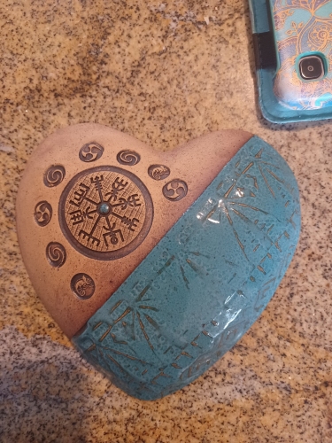 5" wide by 2" tall back and dresser coin dish with egyptian writings and art.
