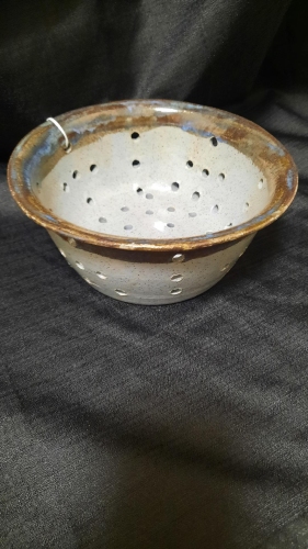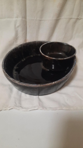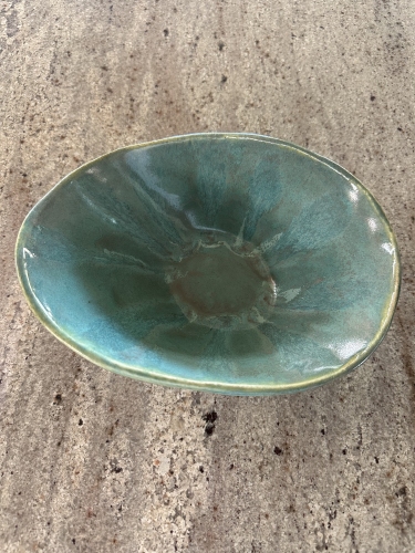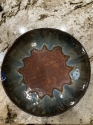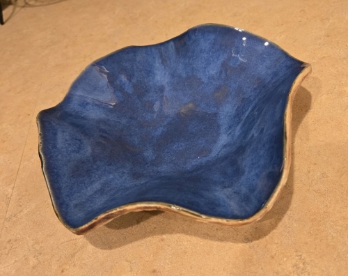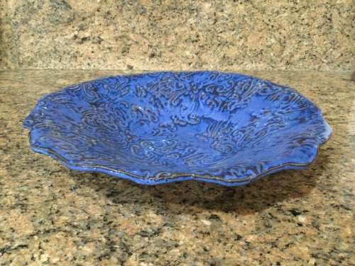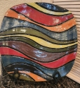 Bowl (wavy) is 9" in diameter and back is textured and stained.