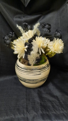 Decorative piece for indoor or outdoor use. Placed in handmade pot (included).