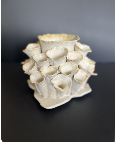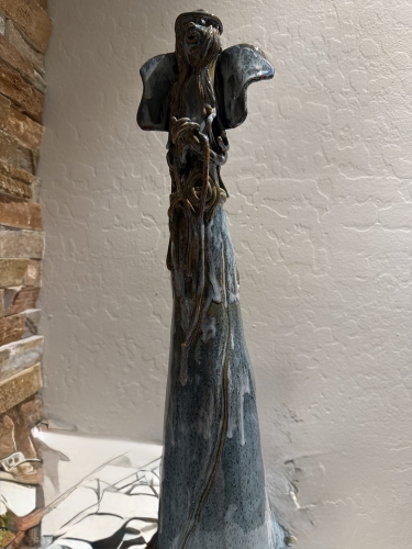 Tall, decorative stoneware piece. For decorative use only, water not recommended. Not food safe.