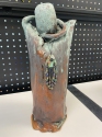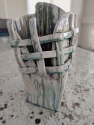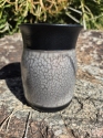 10x6 square vase, Raku fired white crackle with a multi color drip effect. ideal as a candle holder or dried flowers.