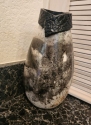 Decorative stoneware piece topped with agate slice. Measures 11in tall x 7.5in wide x 7.5 in deep. Water not recommended, not food safe.