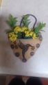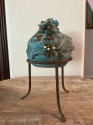 Mary’s rust pot. Teal/brown. Decorated. Comes with the stand