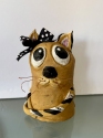 Decorative, lidded stoneware piece with twisted handles. Measures 13 in tall x 7 in wide x 7 in deep. Water not recommended, not food safe.