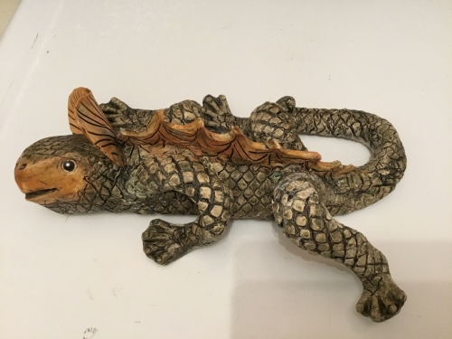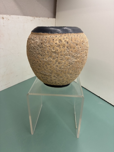This pot has been sealed and will hold water. The Obvara coloring looks like snake skin. Measures 10.5"