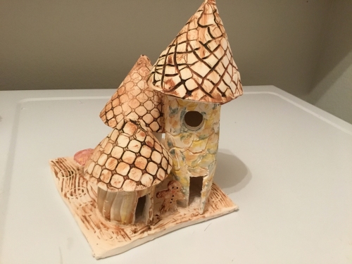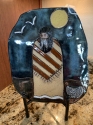 This raku piece has hearts on the front and back. The sides are done in crackle.