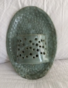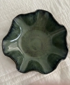 Approx 7 1/2" diameter X 2 1/2" Raindrop textured green rippled bowl with magma glaze on the outside.
