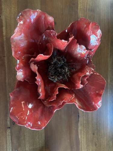 Aster type flower done in raku. Not for food, and STAND COMES WITH PLATE!